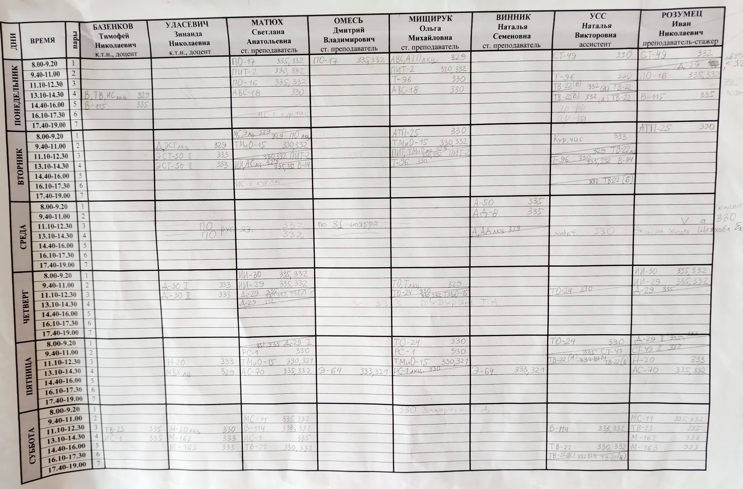 Расписание кафедры 1 семестр 2025-2026 уч.года