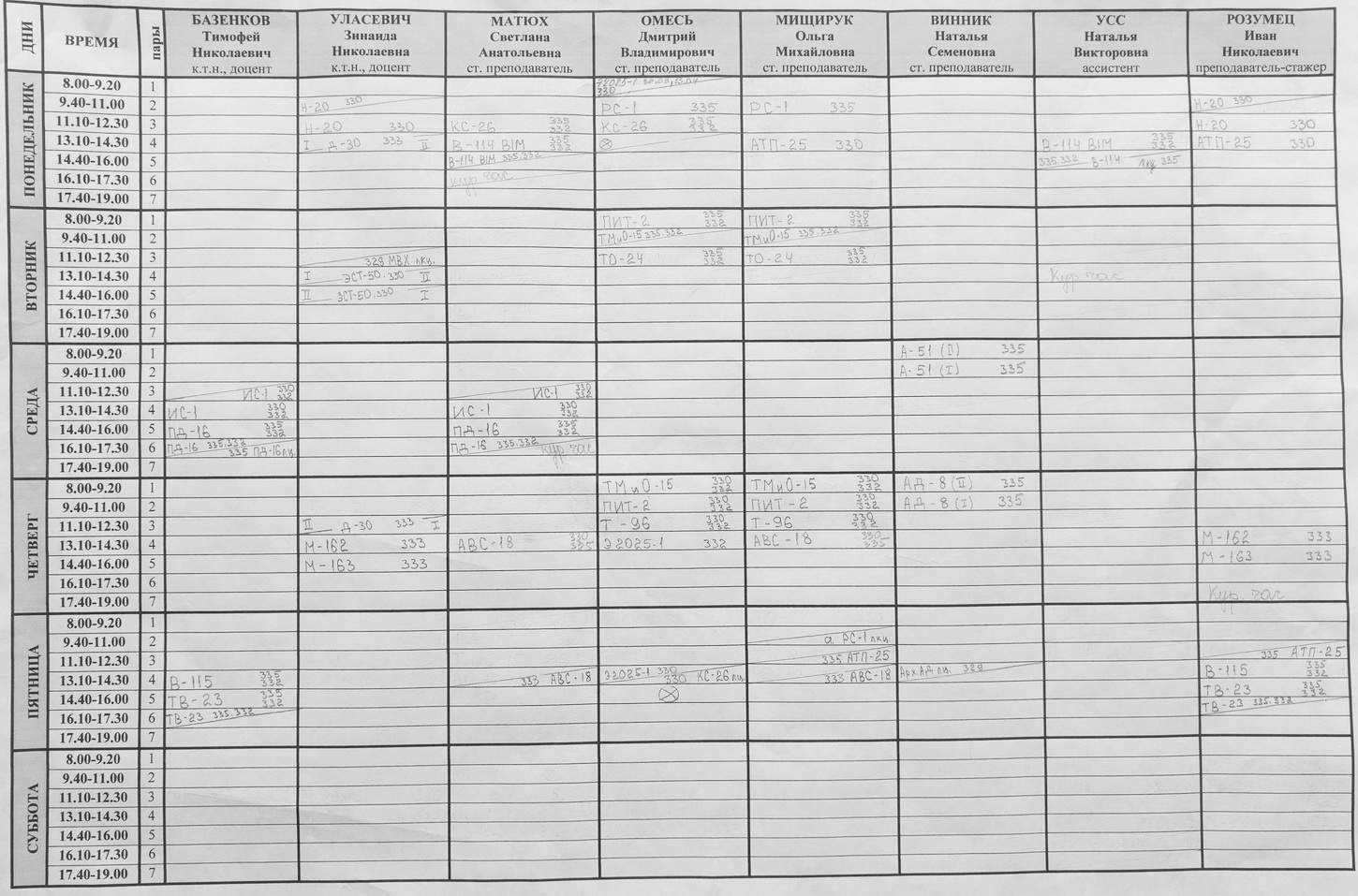 Расписание кафедры 2 семестр 2025-2026 уч.года